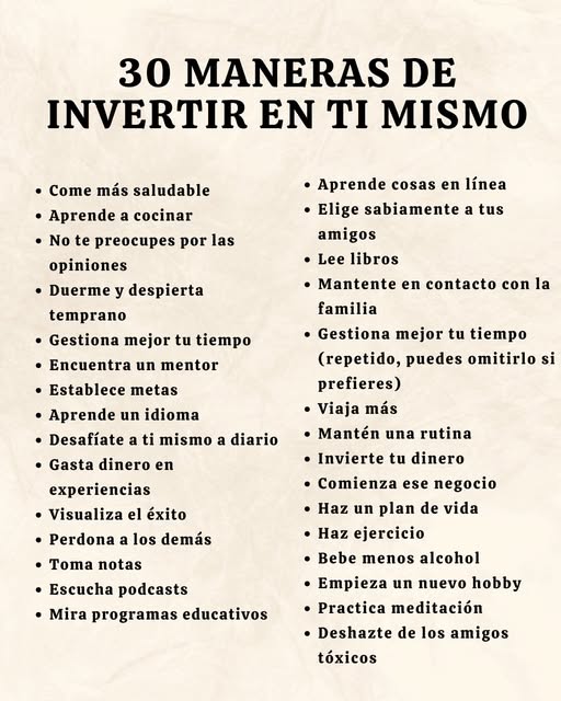 30 maneras de invertir en ti mismo con propósito.
