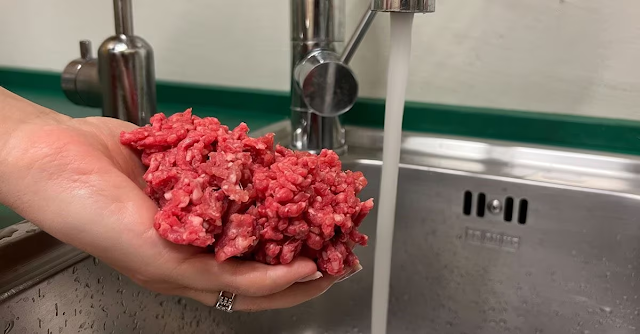 Many think washing ground beef removes bacteria, but it can actually make it less safe. For what reason? Rinsing can make it more likely for germs to spread. When water from the meat splashes, it can carry bacteria to different parts of your kitchen like cutting boards, sink, or other foods you are cooking.